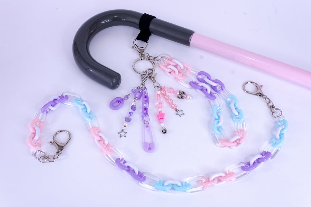 Mix & match your favorite acrylic belt chains and wrist straps!! If you wanna switch your clasps out for a different color or want us to include an elastic loop connector for your wrist strap, let us know in your order notes!